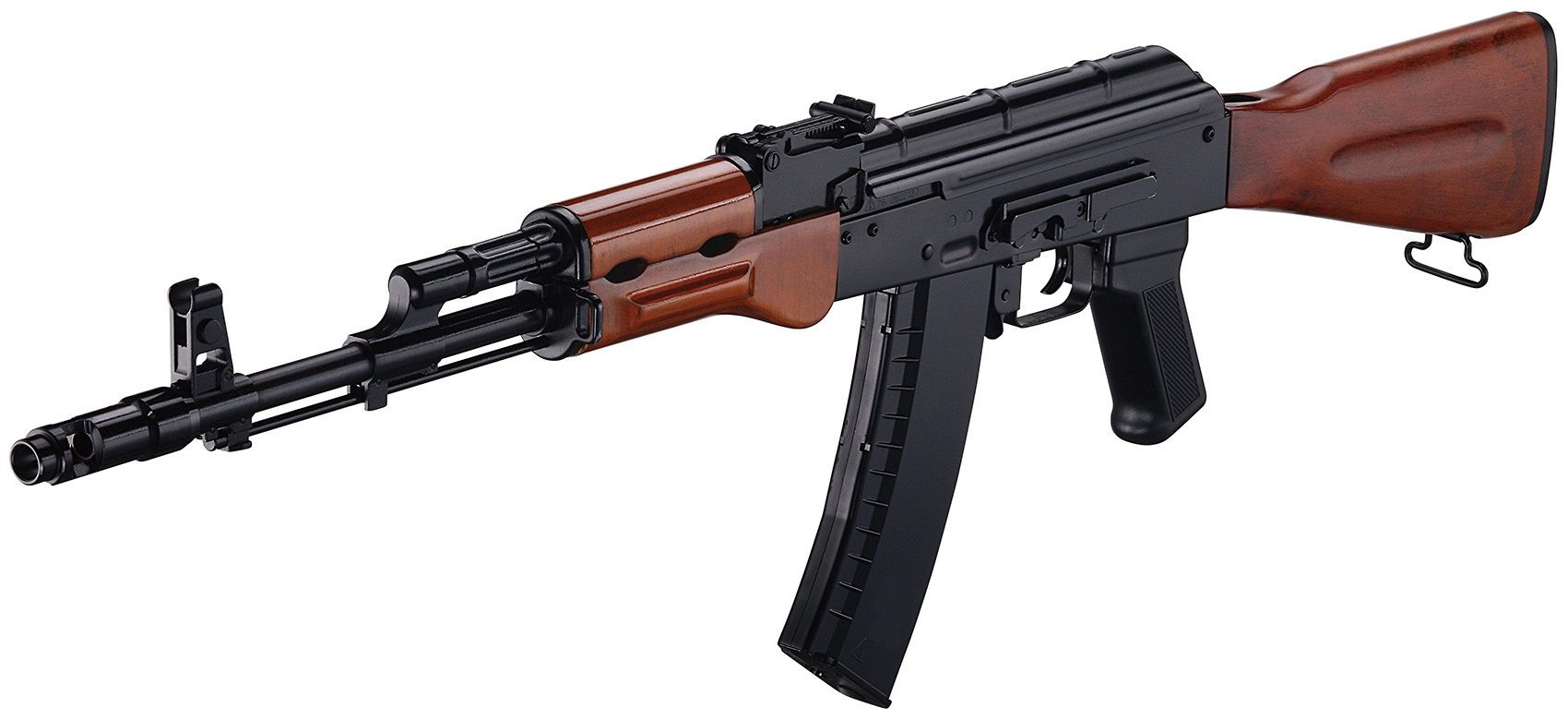 A simple design allows you to experience the operation of a simulated real firerarm. The handguard and stock are made of processed beech, fully reproducing the classic appearance and processing techniques. It provides a spacious battery compartment to increase battery life, and comes with two magazines.